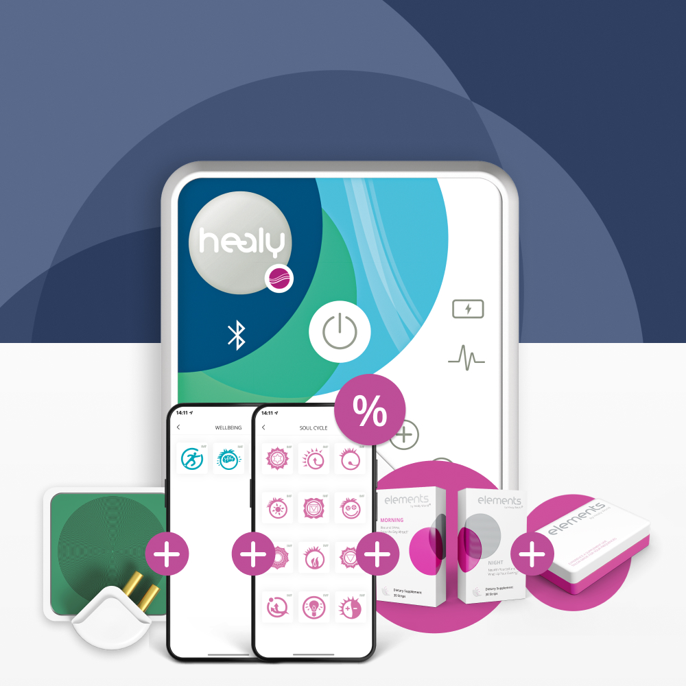 Incluye: Healy Resonance Plus y el MagHealy Professional. Recibe GRATIS el Módulo de Meridianos + Elements Morning&Night Duo + Travel case para Elements GRATIS.